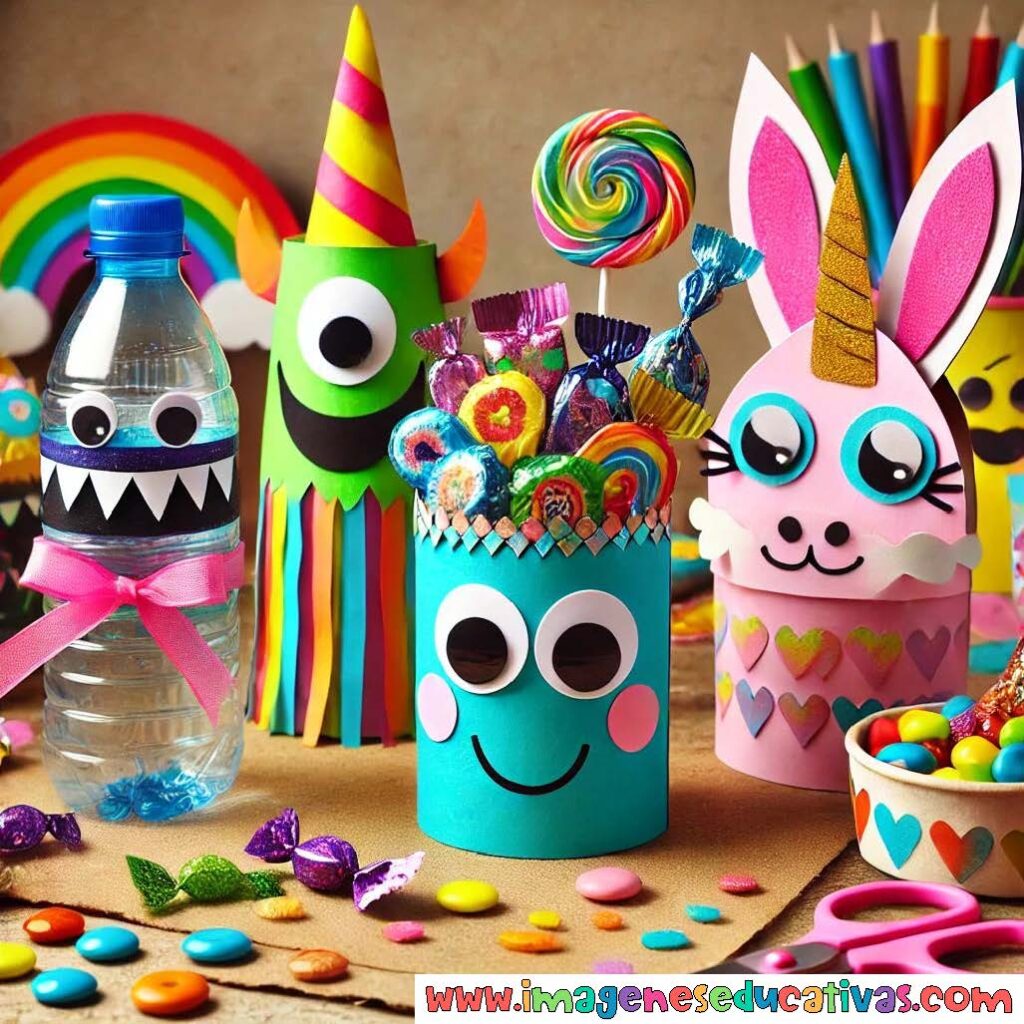 Nuestras ideas creativas para el Día del Niño incluyen dulceros fáciles de hacer con materiales reciclados. Perfectos para regalar en la escuela o en casa. Descubre más manualidades en Imágenes Educativas.