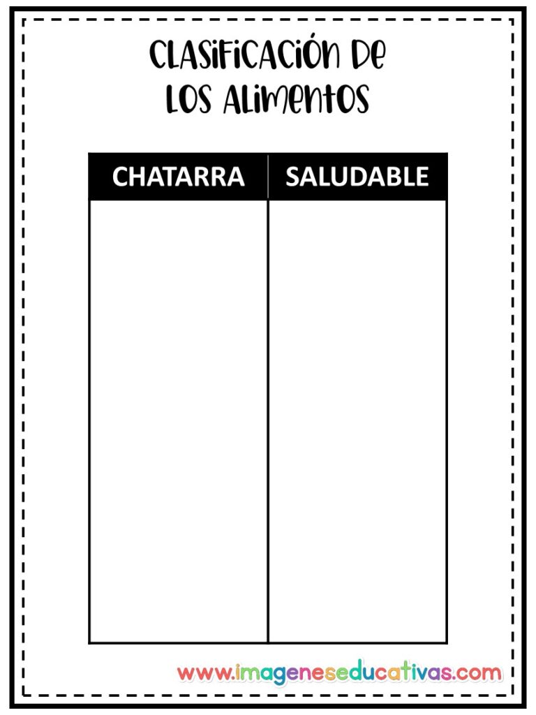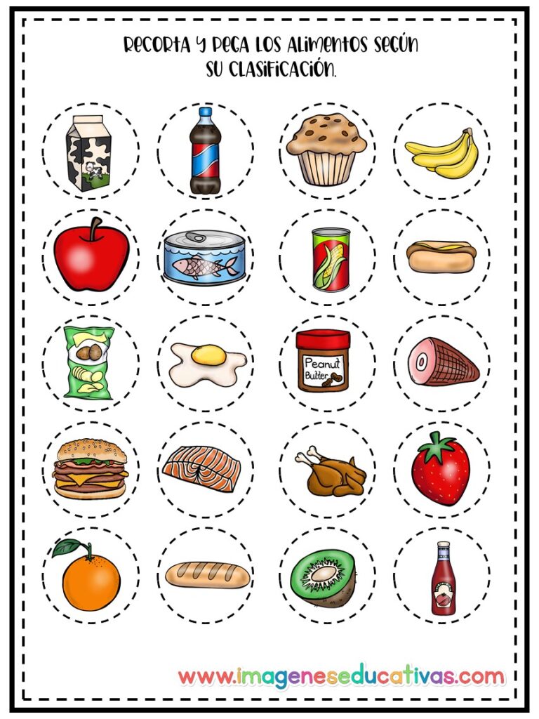 Fichas de clasificación de alimentos, menús y hábitos diarios.