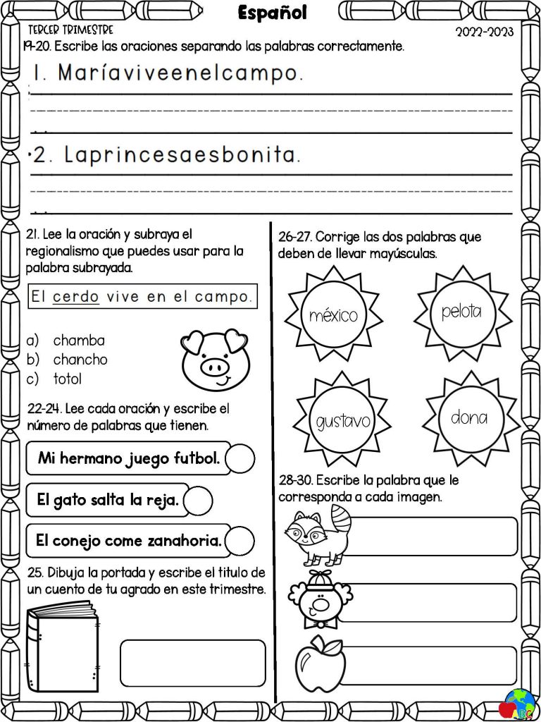 1º GRADO EXAMEN TERCER TRIMESTRE CICLO ESCOLAR 2022-2023
