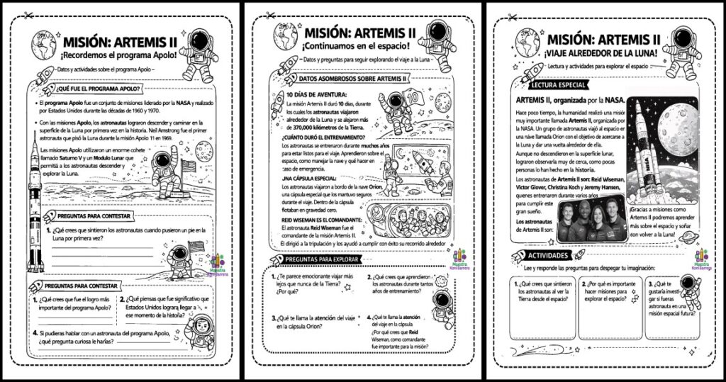Categorías: CIENCIAS, Ciencias naturales, EDUCACIÓN PRIMARIAEtiquetas: actividades escolares, Artemis II, ciencias, comprensión lectora, cuaderno educativo, ESPACIO, exploración espacial, Luna, primaria, RECURSOS EDUCATIVOS