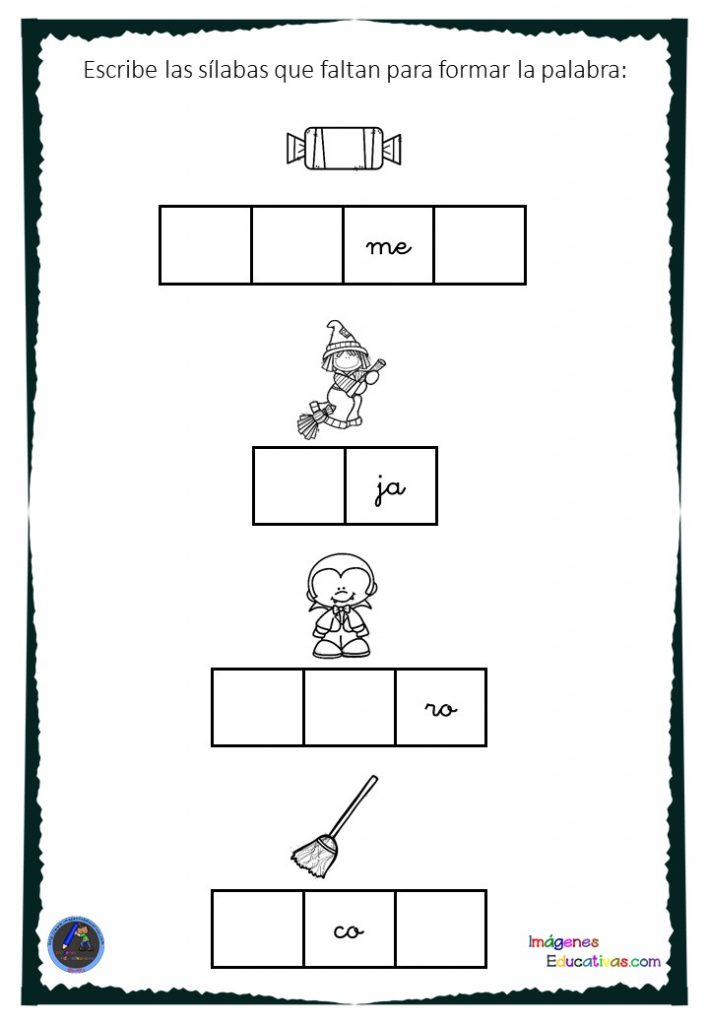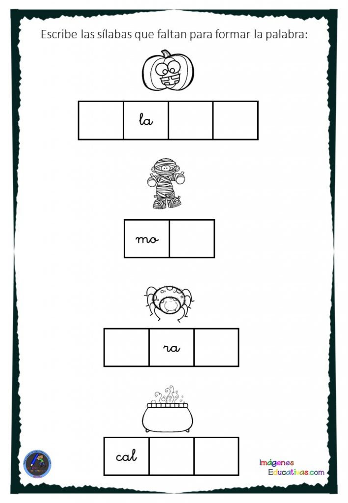 Trabajar con sílabas es una buena estrategia para superar las posibles dificultades que presenten alumnos con dislexia a la hora de leer o escribir. Por eso, os hemos preparado esta actividad en la que hay que escribir la palabra completa a partir de la sílaba de en medio. Todas las palabras del ejercicio son palabras del vocabulario de Halloween.