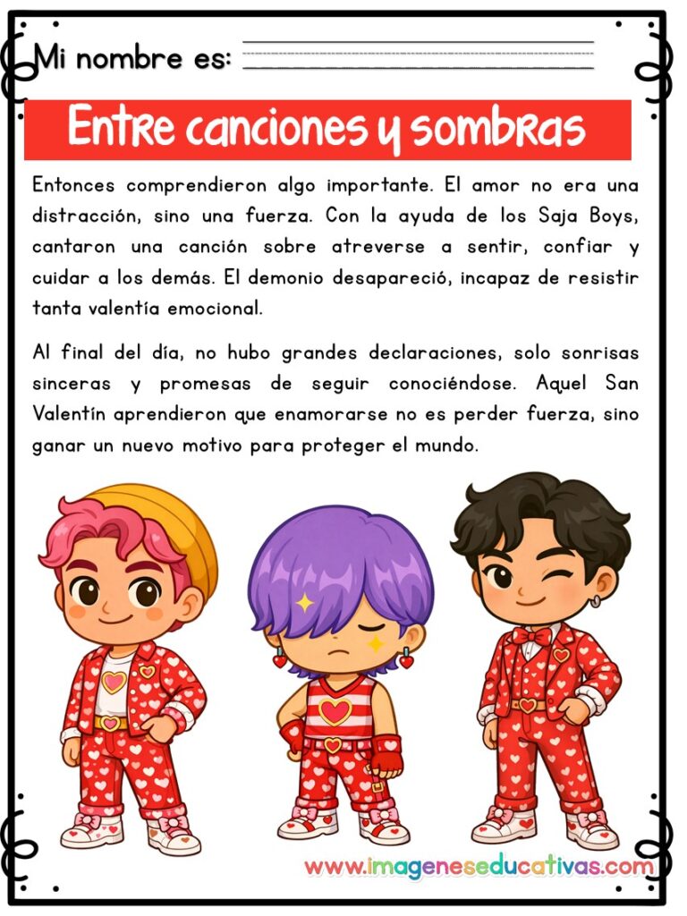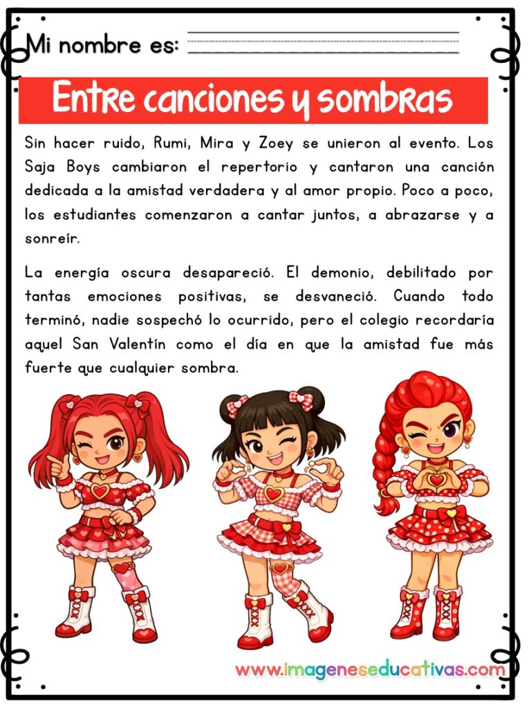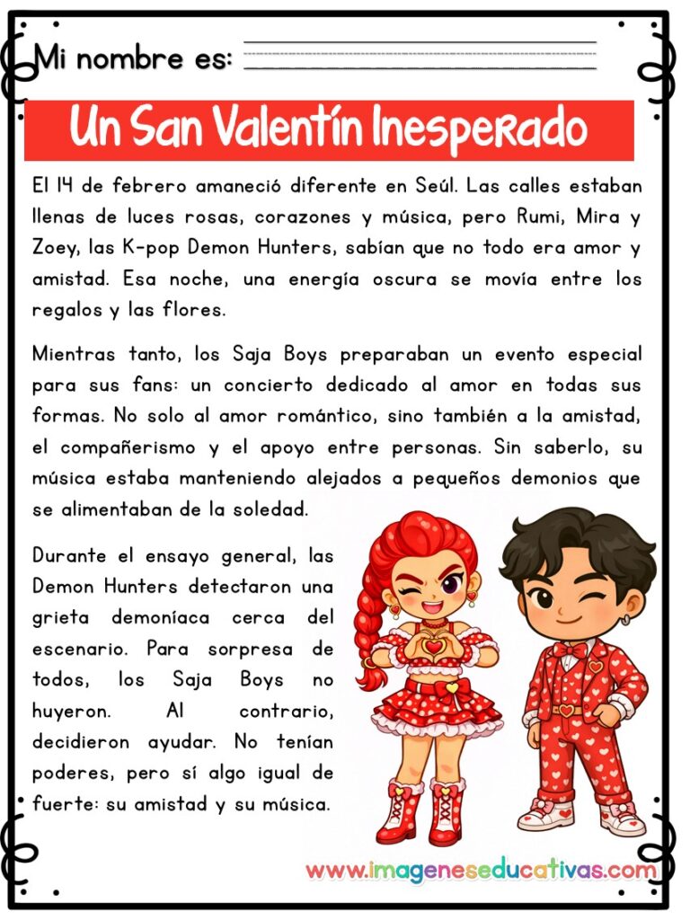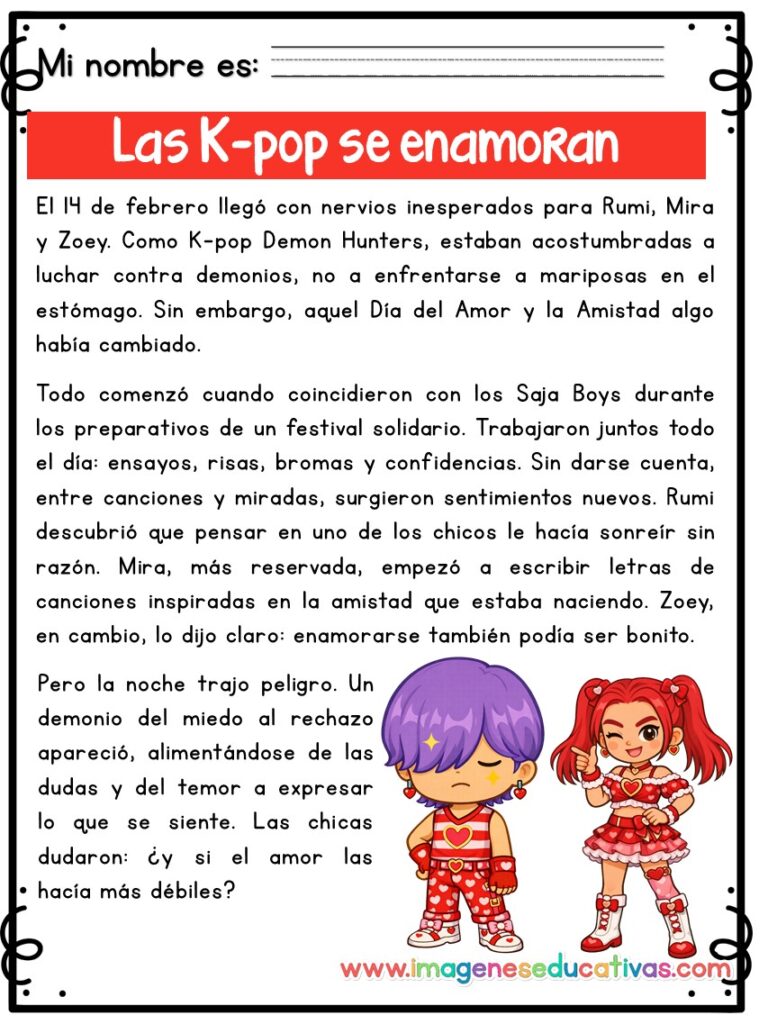 COMPRENSIÓN LECTORA, Comprensión Lectora, EDUCACIÓN PRIMARIA 14 de febrero, aula, comprensión lectora, día del amor y la amistad, Educación Primaria, guerreras K-pop, lectura infantil, lecturas motivadoras, material imprimible, RECURSOS EDUCATIVOS