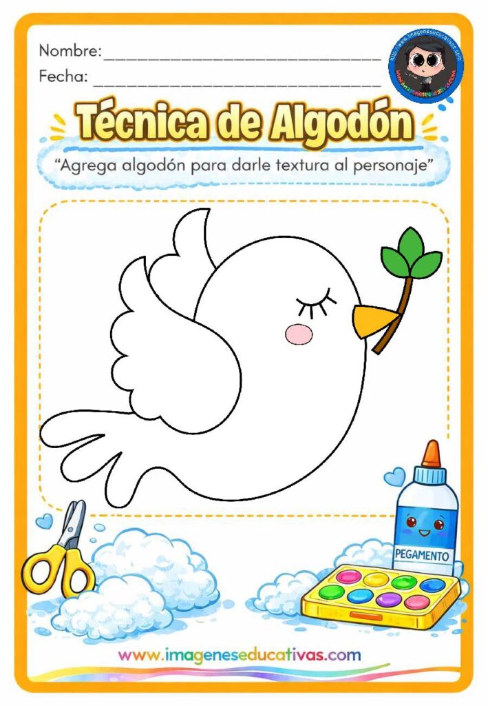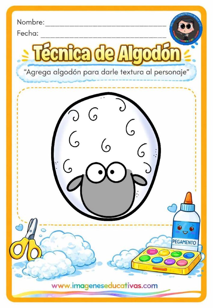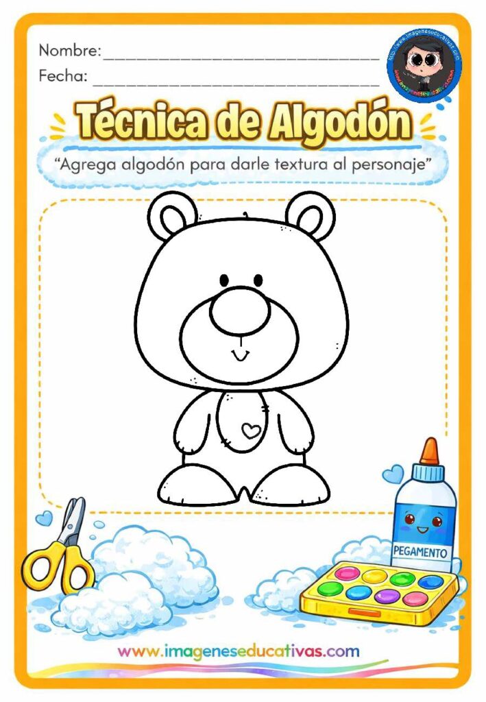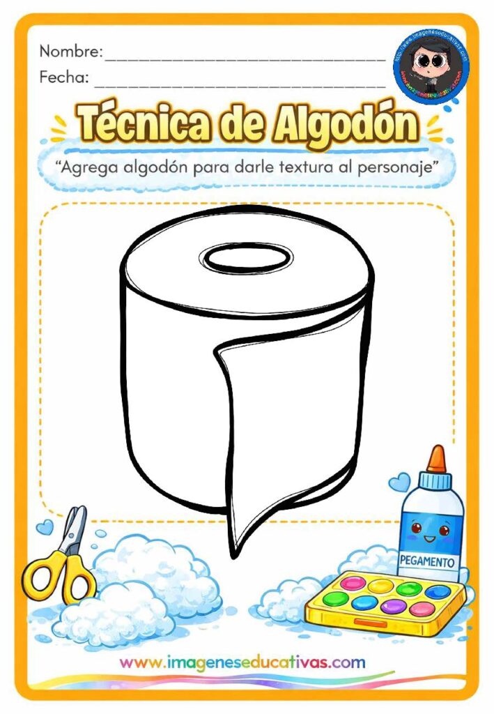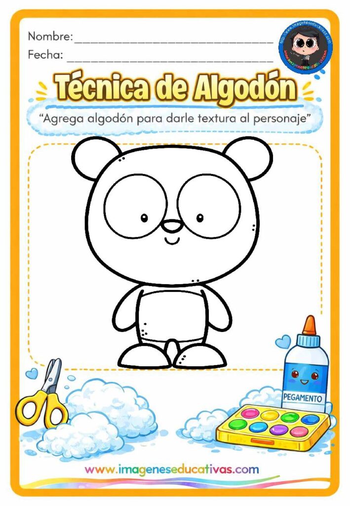 Esta técnica consiste en pegar, manipular o pintar con algodón para crear diferentes efectos visuales y texturizados en dibujos o composiciones. Es una actividad muy accesible, ya que utiliza materiales económicos y fáciles de conseguir, lo que la convierte en una excelente opción para el aula. Muchas propuestas de manualidades creativas para niños incluyen este tipo de técnicas por su valor educativo y su alto nivel de motivación.