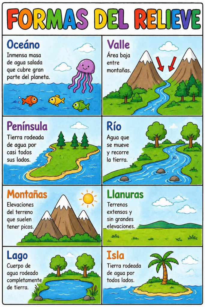 Los apoyos visuales de geografía para primaria son un recurso ideal para facilitar la comprensión de contenidos geográficos de forma clara y atractiva. A través de mapas, esquemas e imágenes, el alumnado desarrolla el aprendizaje visual y mejora la geografía de manera significativa.