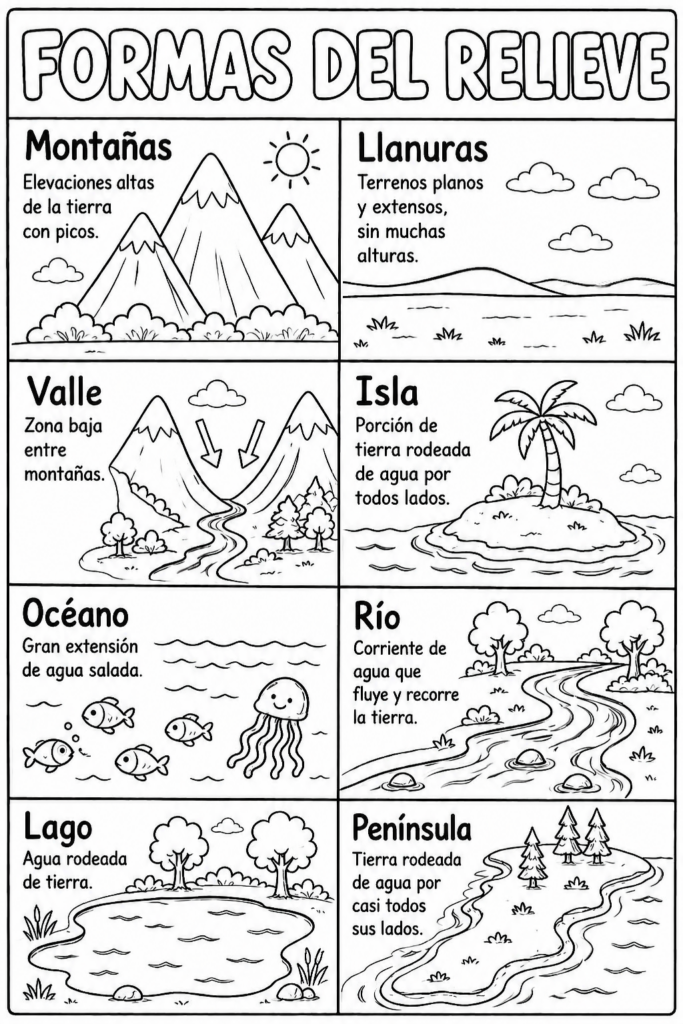 Este tipo de material permite trabajar conceptos como continentes, países, relieves o climas de forma sencilla y organizada. Además, forma parte de los mejores recursos educativos para el área de ciencias sociales en primaria.