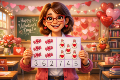 - Tarjetitas de conteo con ilustraciones de San Valentín