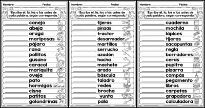- Fichas uso correcto de «el, la, los y las»