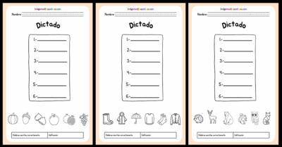 - Hojas de dictado de palabras con temática de otoño