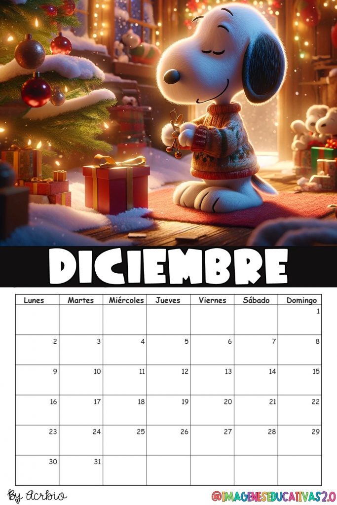 CALENDARIO 2024 TEMÁTICO PARA RELLENAR SNOOPY