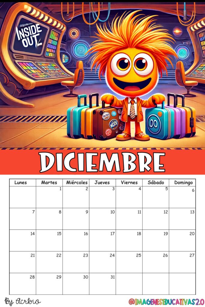 El Calendario 2026 Inside Out 2 de Imágenes Educativas es un recurso colorido, motivador y lleno de emociones inspirado en la película Inside Out 2 (Intensamente 2). Con ilustraciones basadas en las emociones protagonistas —Alegría, Tristeza, Miedo, Ira, Asco y las nuevas emociones— este calendario permite organizar el año mientras se refuerza la educación emocional de una forma visual y cercana al alumnado.