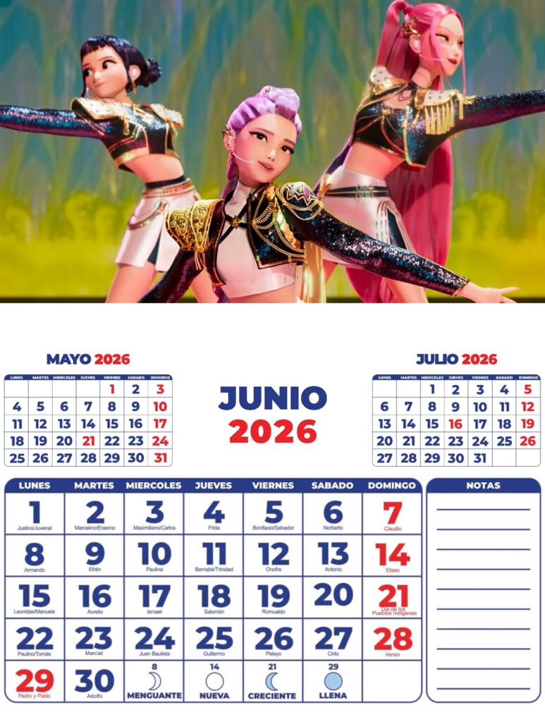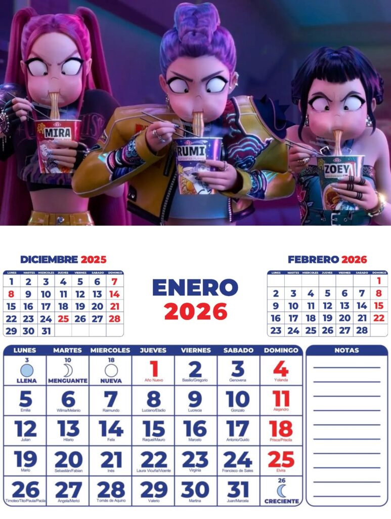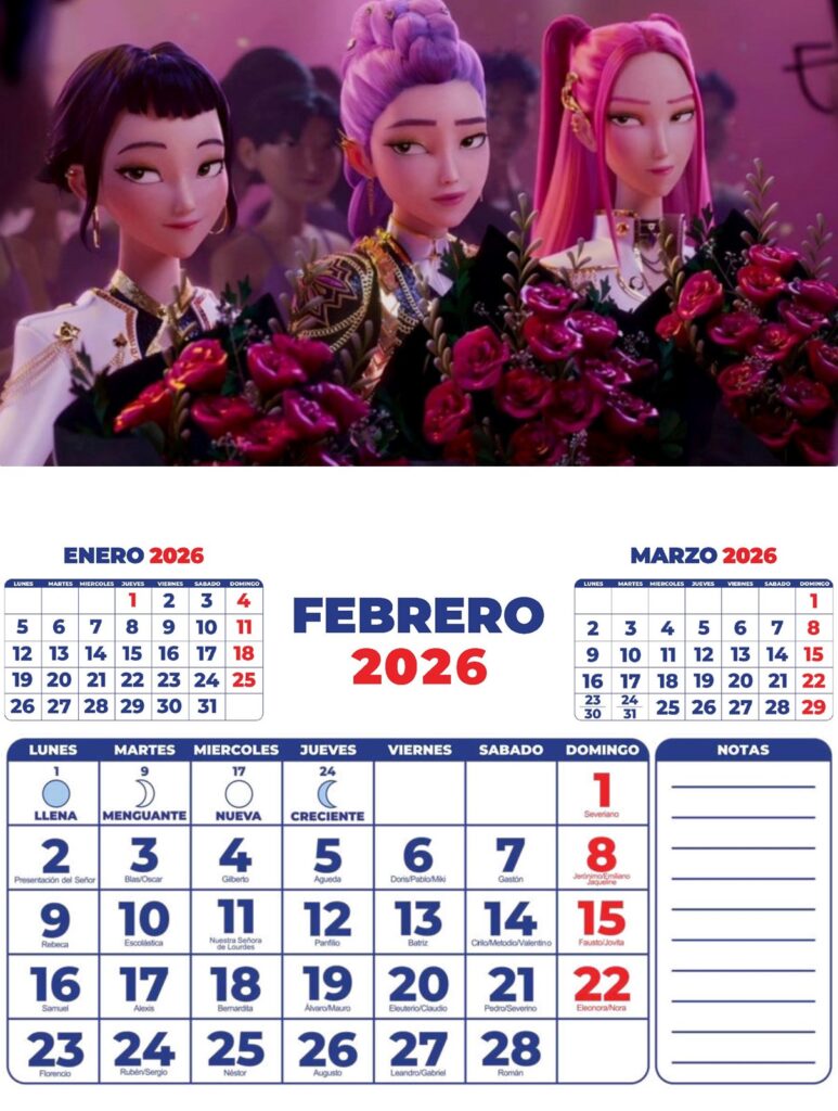 Calendario K pop Demon Hunters 2026 PDF NEW