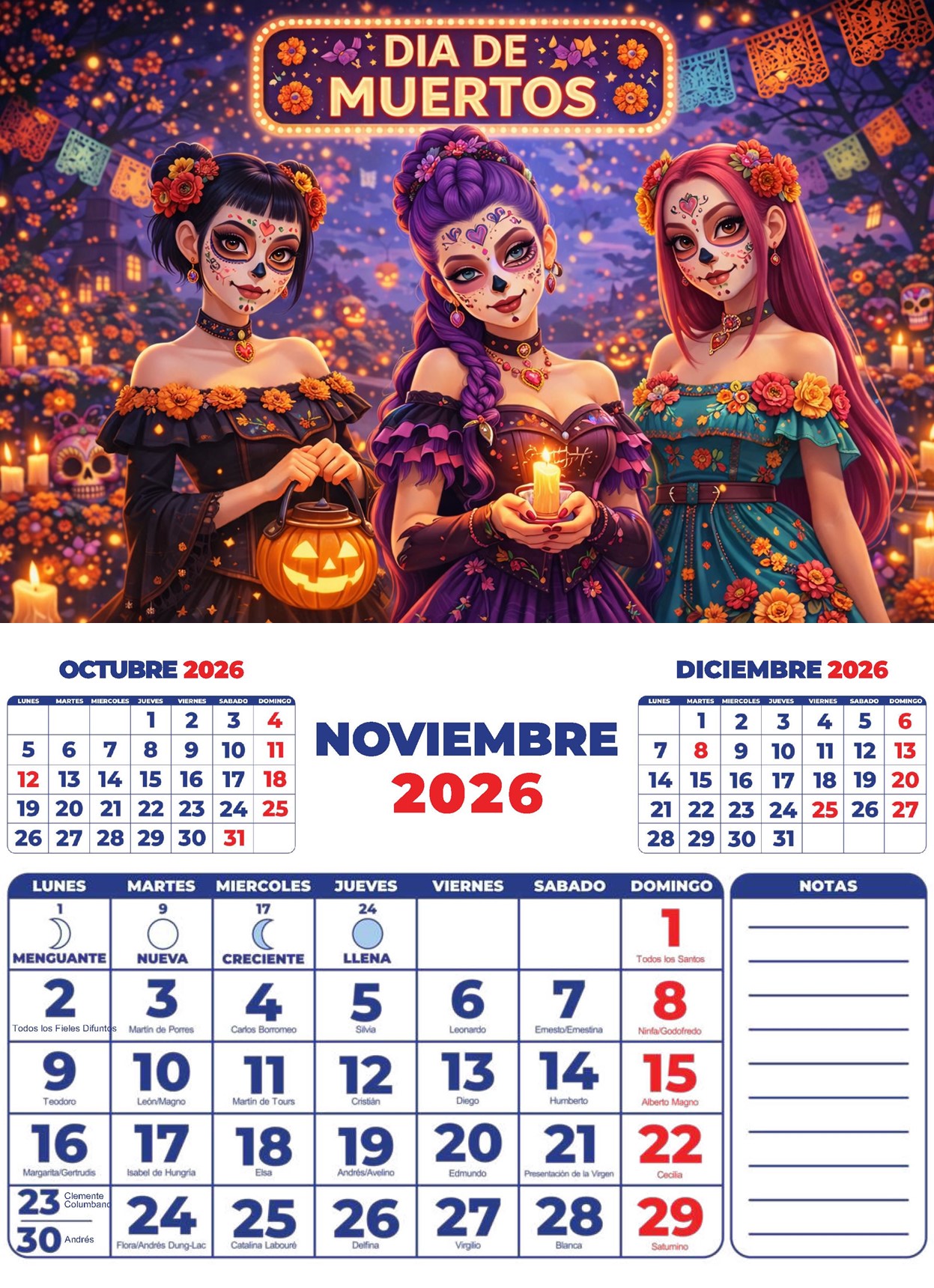 • Calendario 2026 santoral y fases de la Luna