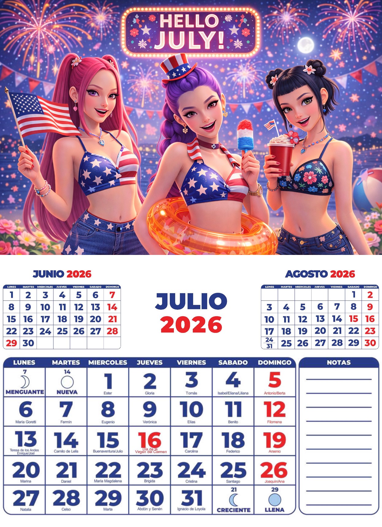 • Calendario PIKACHU 2026 con Santoral y Fases Lunares