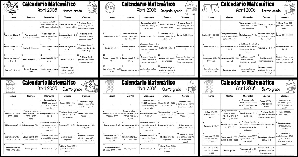 Usted está aquí: Inicio / Calendario actividades emocionales Primer grado Abril / Calendario matemático del mes de Abril 2026 IE_Página_0