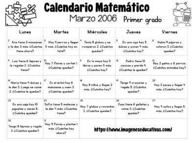 Usted está aquí: Inicio / Calendario matemático del mes de Marzo 1º y 2º Grado. / Calendario matemático del mes de Marzo 2026 (1)