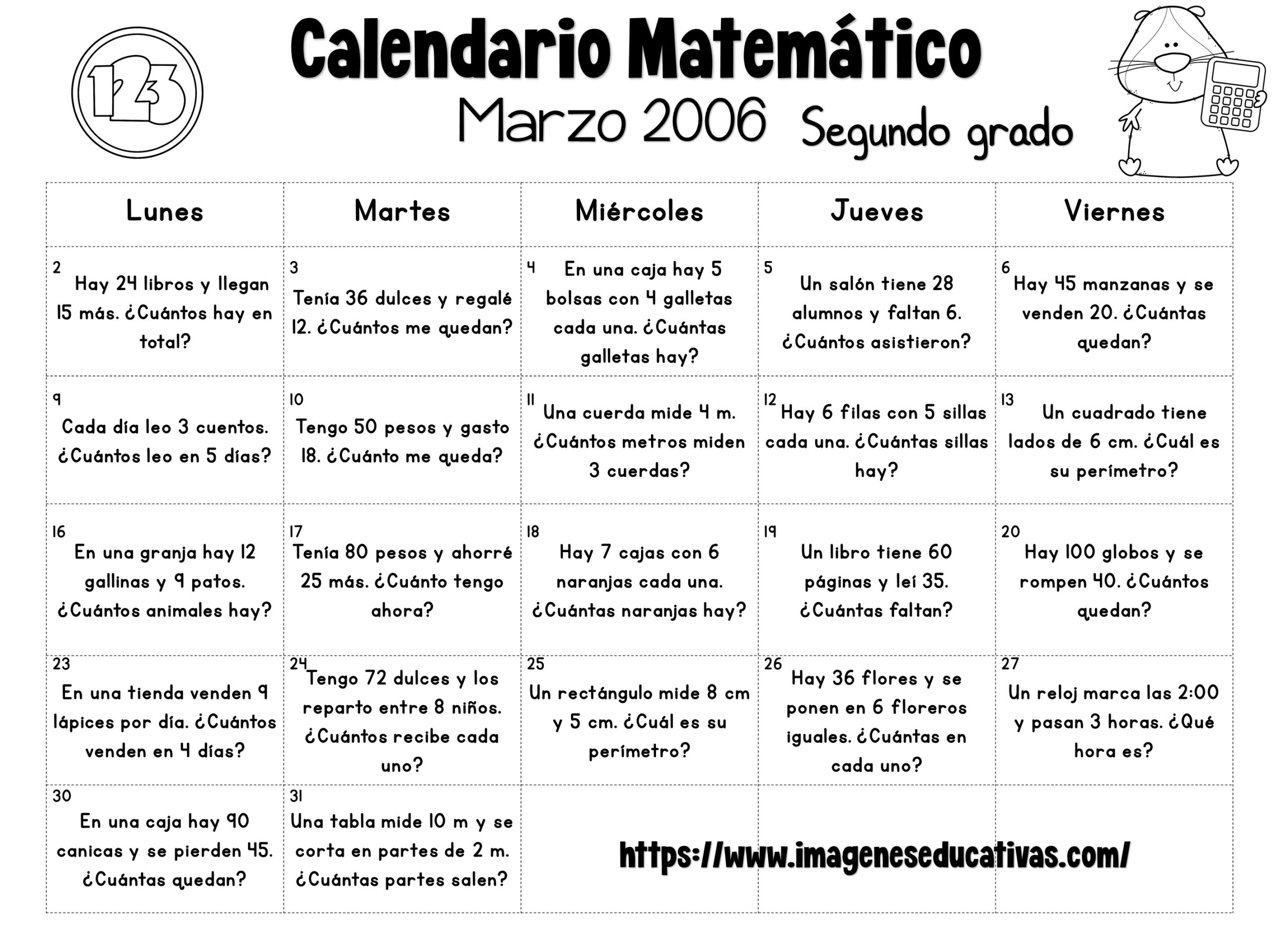 Usted está aquí: Inicio / Calendario matemático del mes de Marzo 1º y 2º Grado. / Calendario matemático del mes de Marzo 2026 (2)