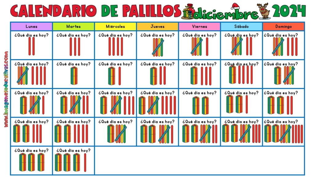 En primer lugar, Calendario matemático palillos diciembre para problemas abn en infantil. es una herramienta educativa y divertida que en infantil ayuda a los niños y niñas a desarrollar habilidades matemáticas básicas a través del conteo diario con palillos de madera, por lo tantoe este recurso visual y práctico es ideal para los primeros años de educación primaria, además convierte el aprendizaje de los números y el conteo en una actividad lúdica y accesible. Incorporar Calendario matemático palillos diciembre para problemas abn en infantil, para conteo en la rutina diaria puede transformar la manera en que los niños aprenden matemáticas https://www.imageneseducativas.com/.