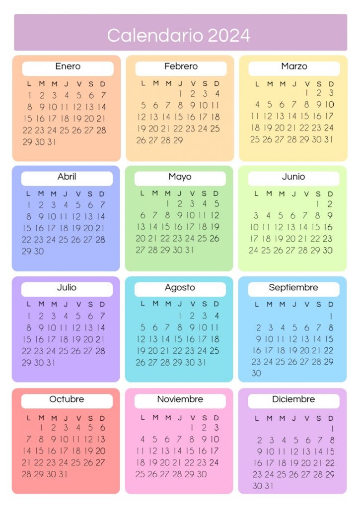 CALENDARIOS Y PLANIFICADORES 2024 GRAN FORMATO. LISTOS PARA DESCARGAR E IMPRIMIR