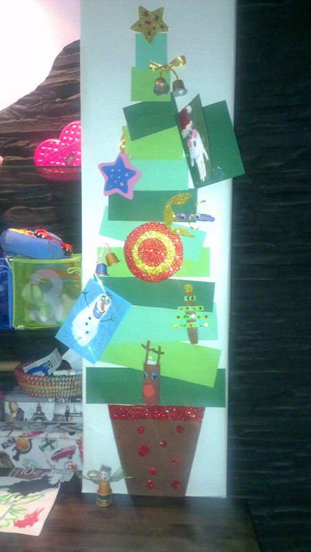 Colección de árboles de navidad de tu clase o salón con materiales reciclados