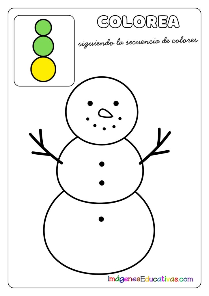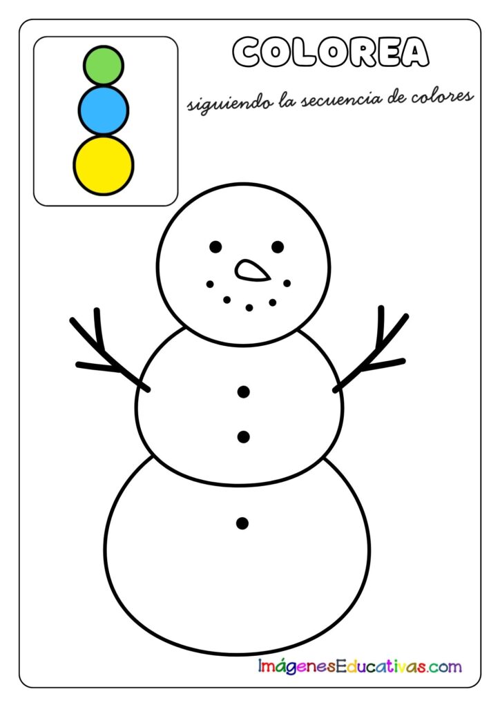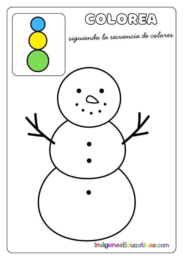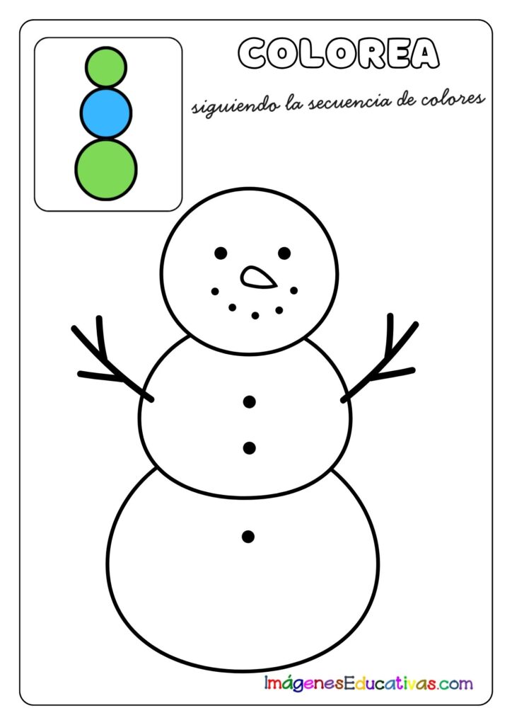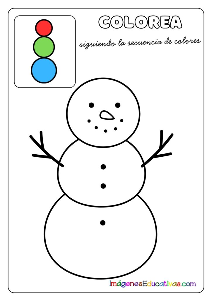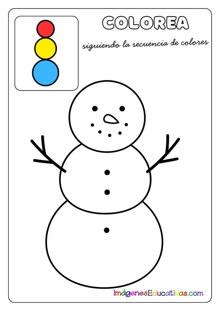 Colorea el muñeco de nieve siguiendo la secuencia de colores