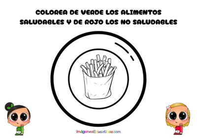 • Colorear alimentos saludables y no saludables por el Día de la Alimentación