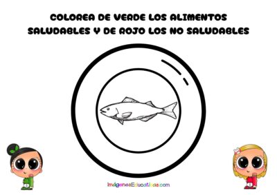 • Colorear alimentos saludables y no saludables por el Día de la Alimentación