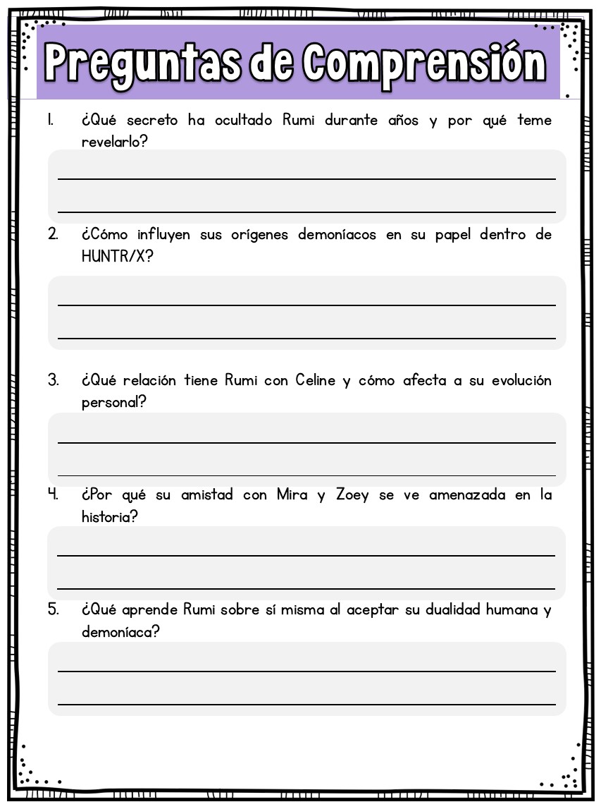 - Fichas para realizar descripciones de los personajes de las Guerreras K-Pop