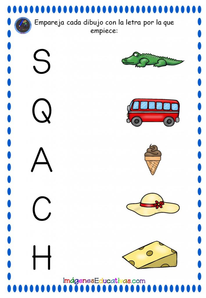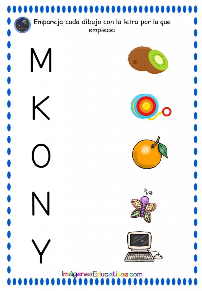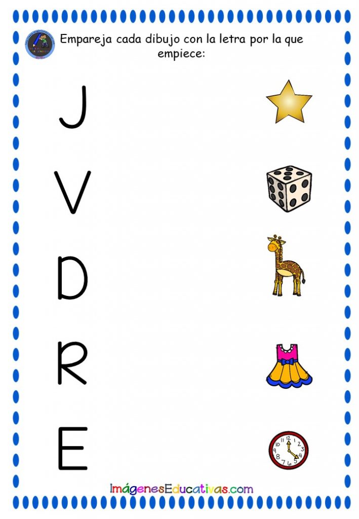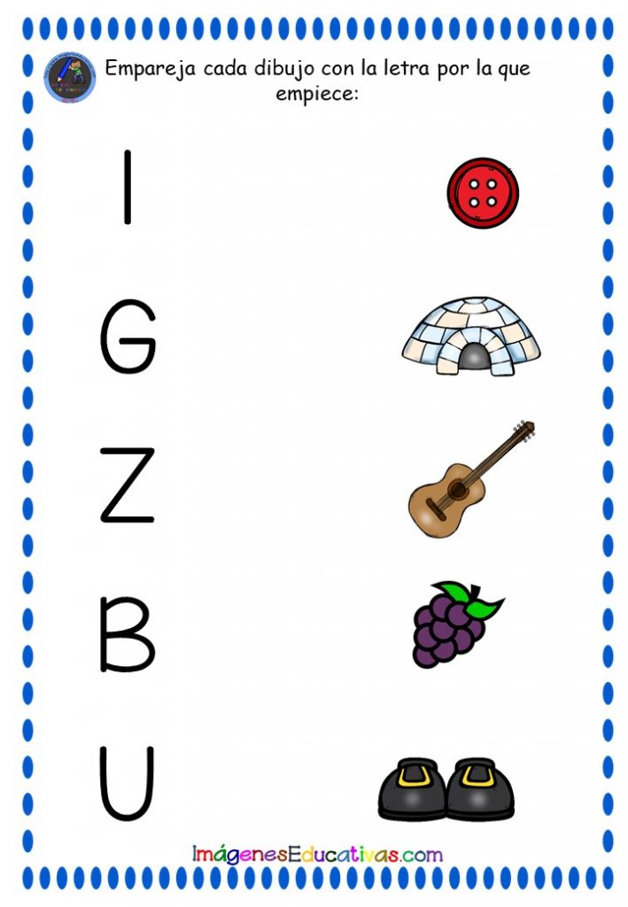 CONCIENCIA FONOLÓGICA: EMPAREJA CADA DIBUJO CON LA LETRA CORRESPONDIENTE