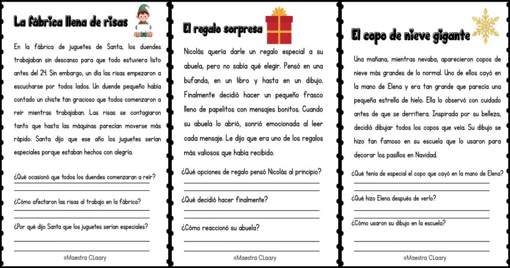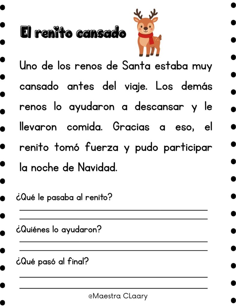 El Cuadernillo de Lecturas de Comprensión Lectora Navideñas · Fase 3 es el recurso perfecto para trabajar la lectura de manera avanzada mientras se disfruta de historias llenas de magia y valores navideños. Con textos cuidadosamente elaborados y actividades retadoras, este cuadernillo convierte diciembre en una oportunidad ideal para profundizar en la comprensión lectora.