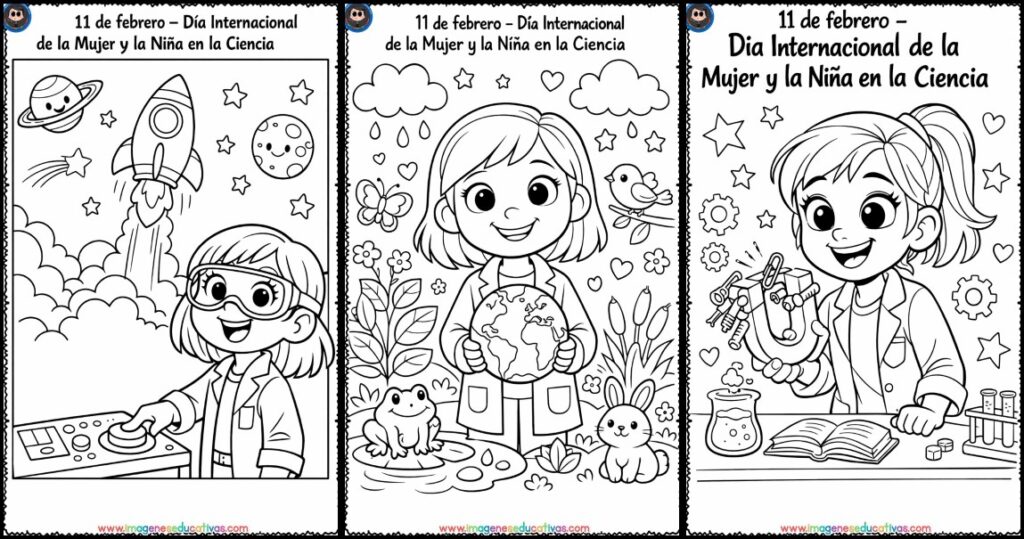 Dibujos para colorear por el Día Internacional de la mujer y la niña en la ciencia PDF_Parte1 Dibujos para colorear por el Día Internacional de la mujer y la niña en la ciencia PDF_Parte2