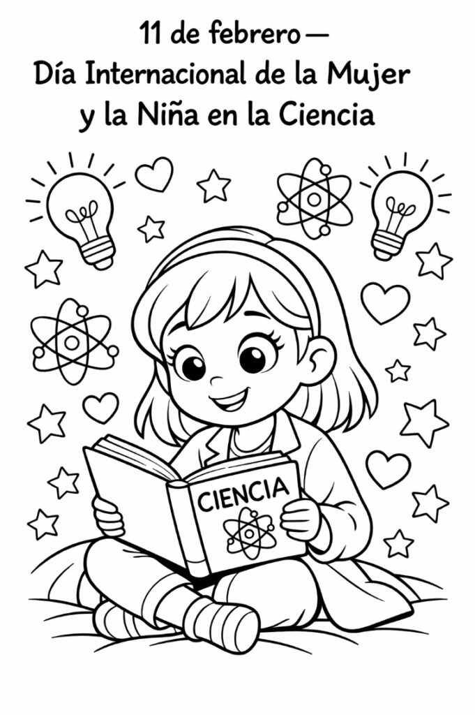 El cuadernillo para colorear del Día Internacional de la Mujer y la Niña en la Ciencia es un recurso educativo pensado para conmemorar el 11 de febrero y visibilizar el papel de las mujeres en el ámbito científico. A través de ilustraciones y actividades sencillas, el alumnado conoce referentes femeninos en la ciencia mientras desarrolla la creatividad y la expresión artística.