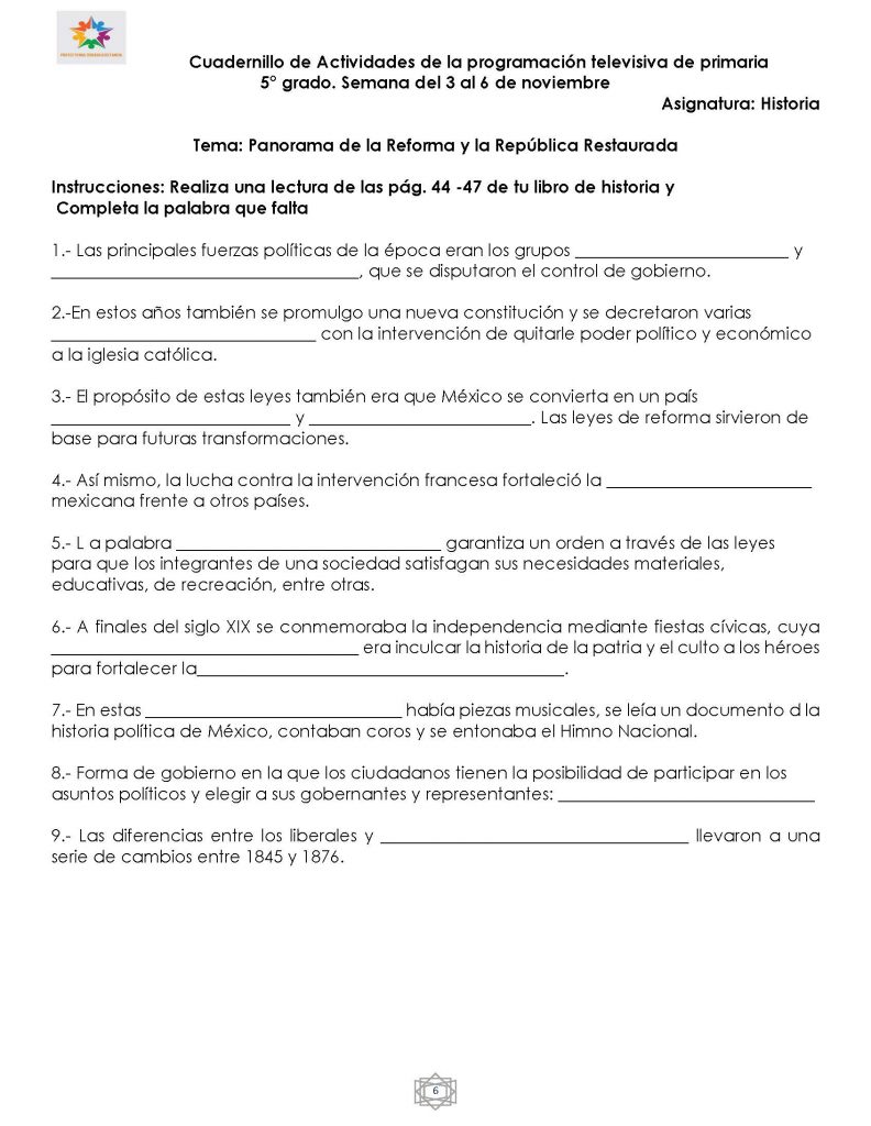 Les presentamos las actividades de la semana 11, del 3 al 6 de noviembre y ligas de apoyo