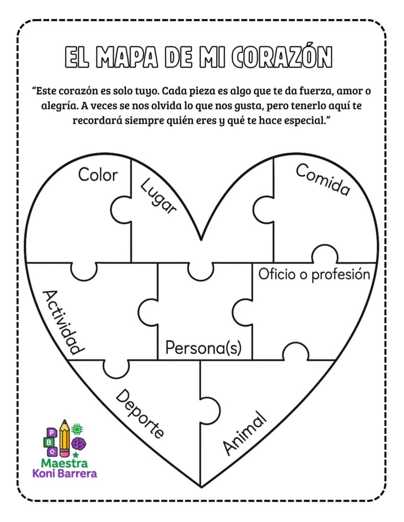 Actividades enfocadas en autoconocimiento, emociones, cualidades y logros personales.