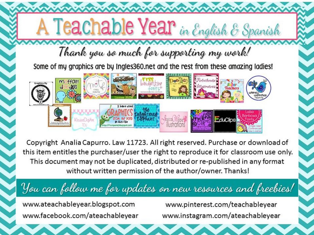 Hoy os traemos este maravilloso material elaborado por Ana una estupenda maestra de Argentina, os recomendamos que visitéis su blog y su página en teacher pay teacher