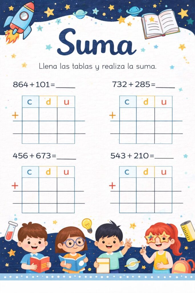 Finalmente, el cuaderno de sumas con descomposición numérica es una herramienta práctica para trabajar tanto en el aula como en casa. Si buscas más material educativo de matemáticas para primaria, encontrarás múltiples recursos listos para imprimir y utilizar.