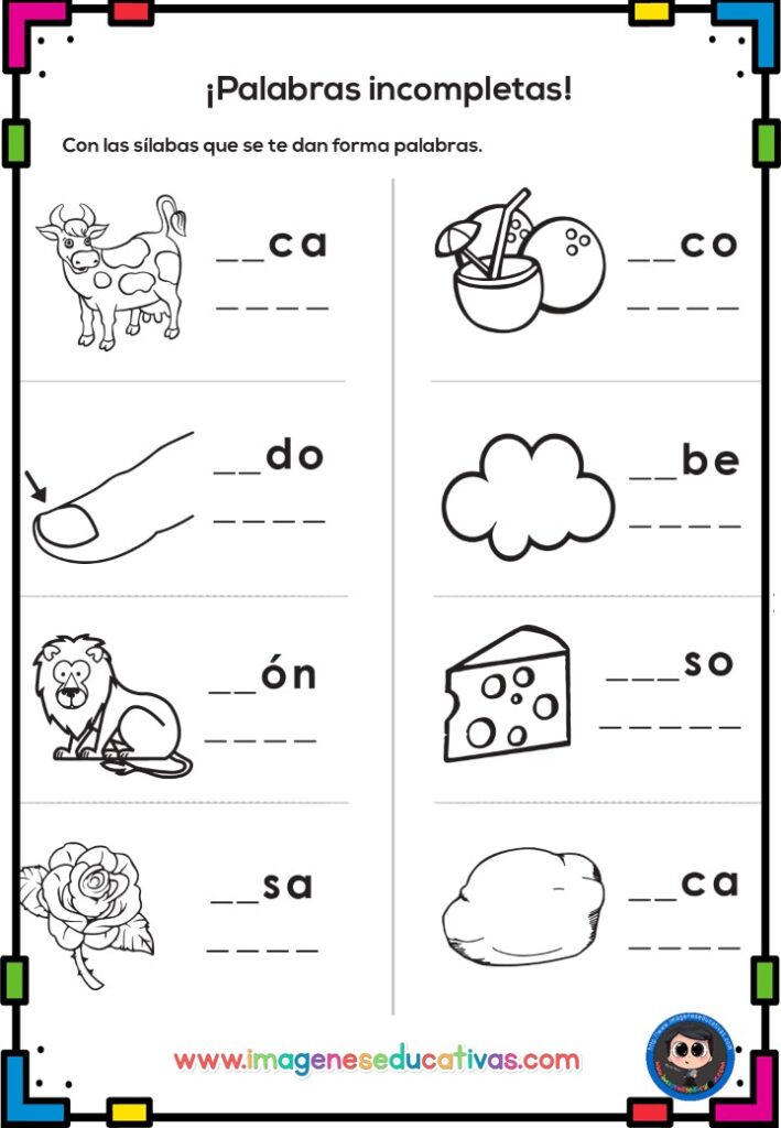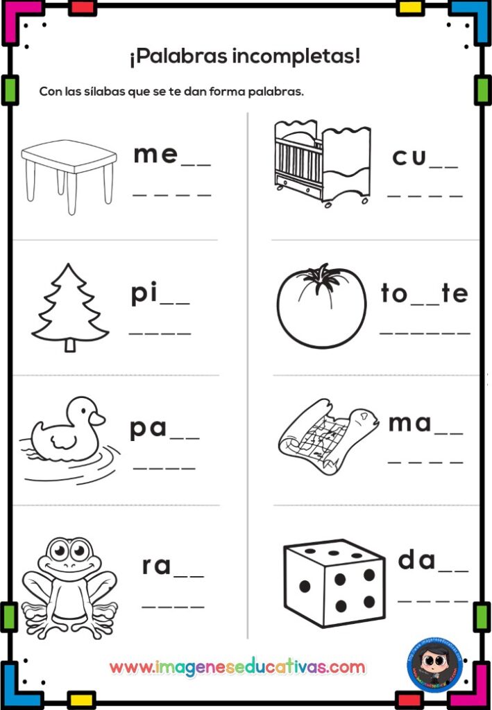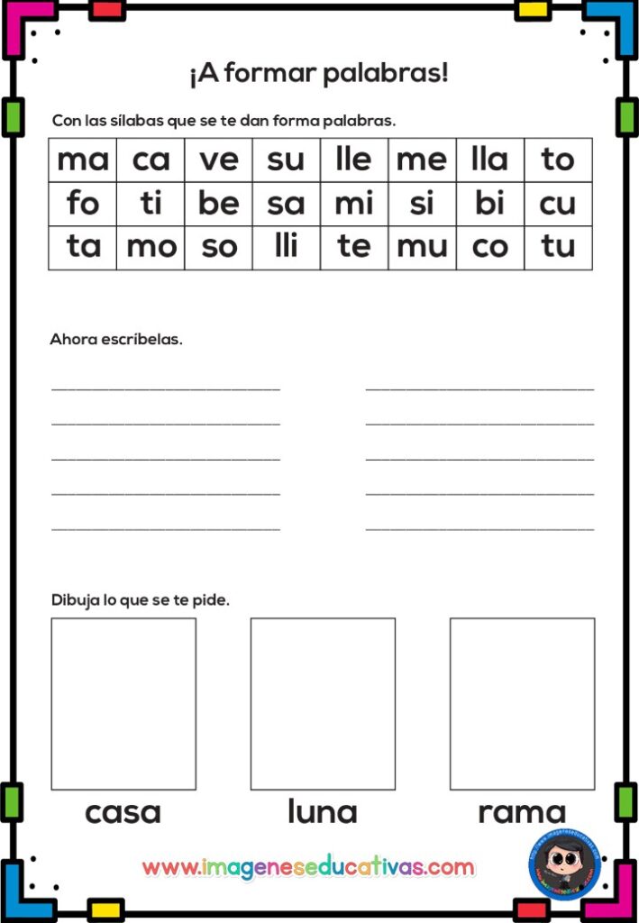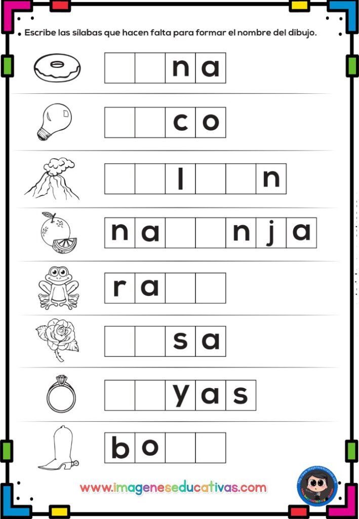 ✍️ Ejercicios de reconocimiento de letras, sílabas y palabras.
