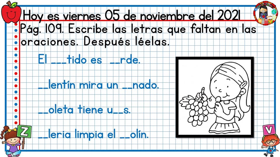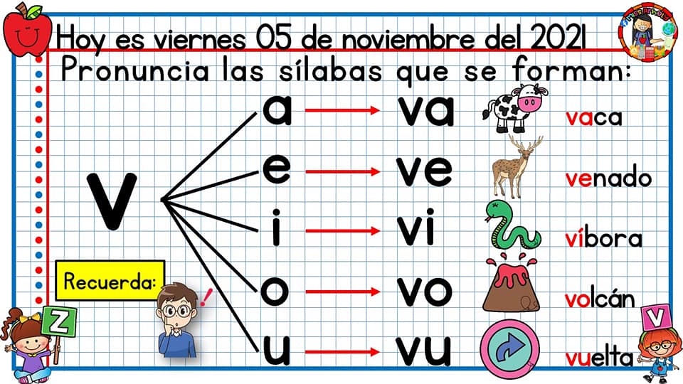 CUADERNO PARA REPASAR SÍLABAS DIRECTAS LETRAS Z Y V SEMANA DEL 1 AL 5 DE NOVIEMBRE