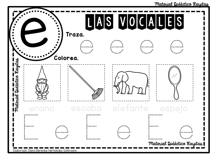 Material de trabajo de lecto-escritura, para trabajar las vocales con niños de 5 años y niños de primer grado. En este grupo de fichas se trabajarán las vocales en forma conjunta como un recuento y un repaso, en donde el niño tendrá que reconocer, señalar, discriminar visual y auditivamente, señalar, interpretar, escribir y leer cada una de ellas.