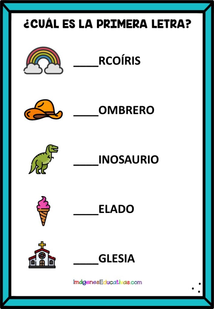 En segundo lugar las fichas imprimibles y en concreto las fichas ¿Cuál es la primera letra? son ideales para trabajar el inicio a la lectura en los primros ciclos de Educación Primaria y en educación Infantil. Son ideales para maestros y maestras y puedes descarlas de forma toralmente gratuita.