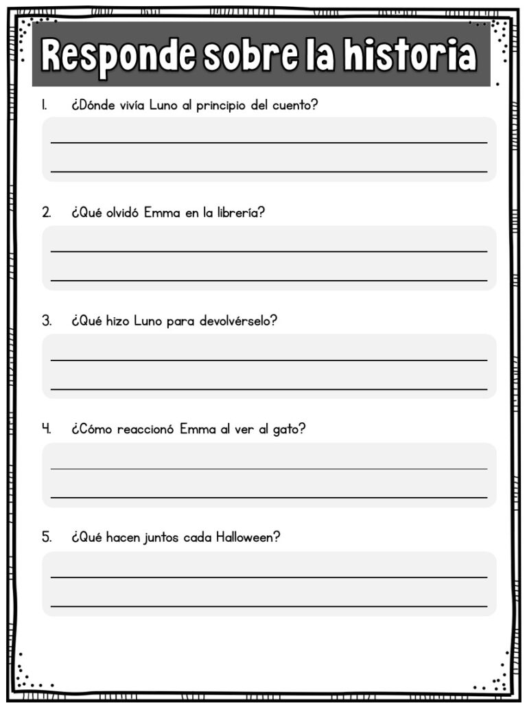 • Preguntas para reforzar la comprensión, la inferencia y la expresión oral.