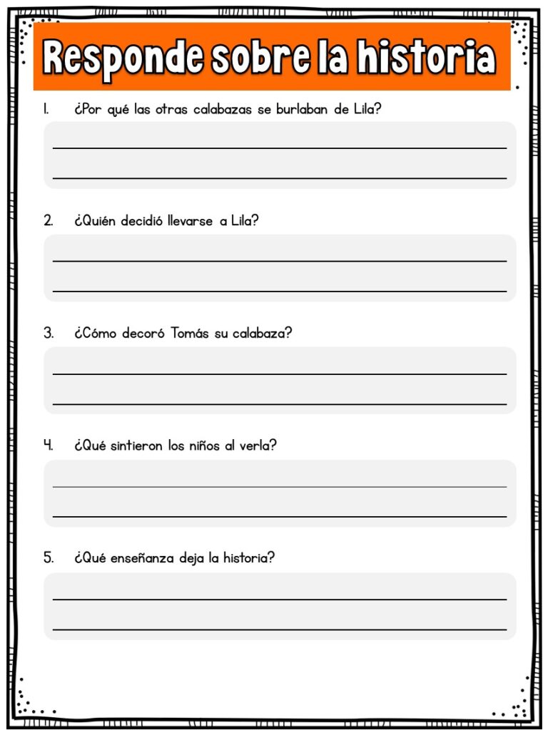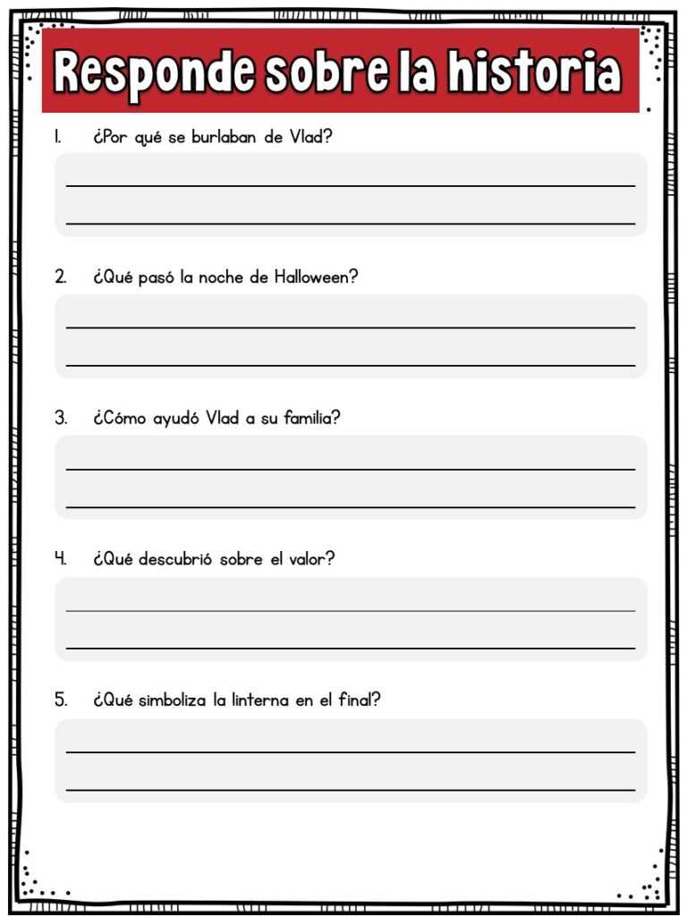 Los Cuentos de comprensión lectora para Halloween son un recurso perfecto para combinar la diversión de esta festividad con el desarrollo de las habilidades lectoras. A través de historias breves, misteriosas y llenas de humor, los estudiantes practican la lectura comprensiva, amplían su vocabulario y disfrutan del aprendizaje de una manera lúdica.