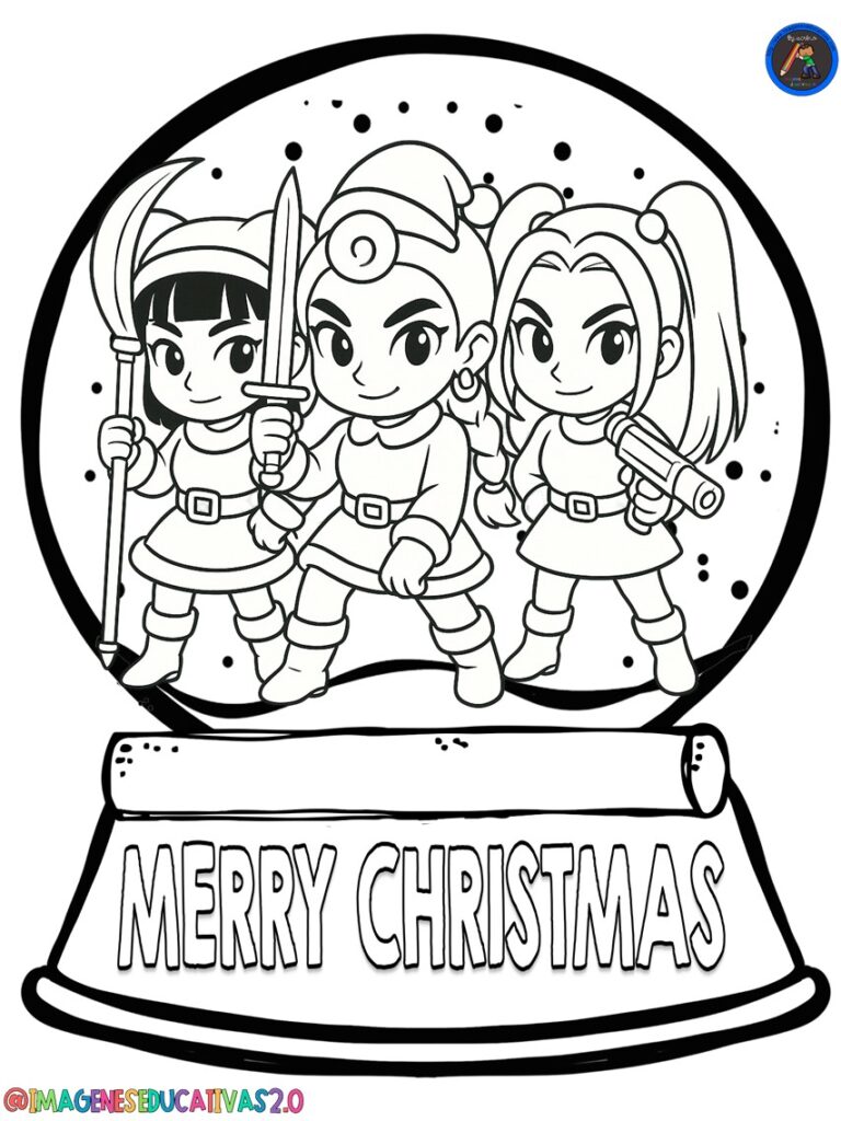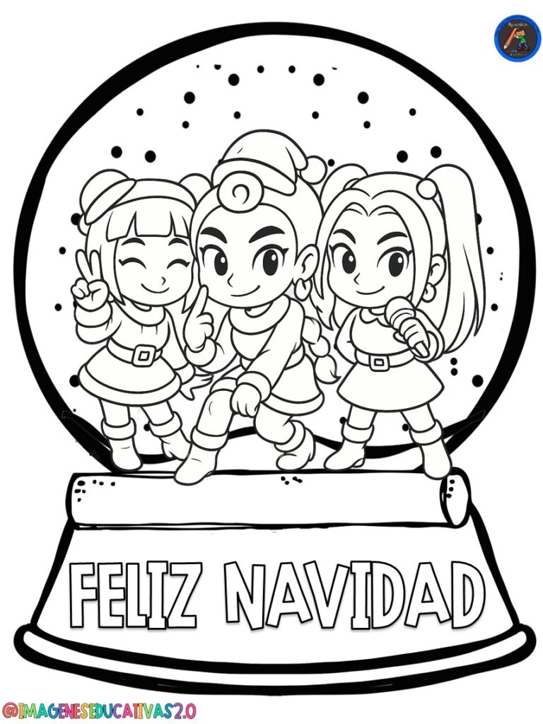 Los Dibujos Bolas Navidad para colorear de las Guerreras K pop de Imágenes Educativas son un recurso encantador para llenar tu aula o tu hogar de color, música y espíritu festivo. Las heroínas del universo K-Pop Demon Hunters —Rumi, Mira, Zoey y sus compañeras— aparecen en versiones navideñas con gorritos de Santa, luces brillantes, regalos y decoraciones invernales que harán que los niños y niñas disfruten coloreando mientras viven la magia de la Navidad.