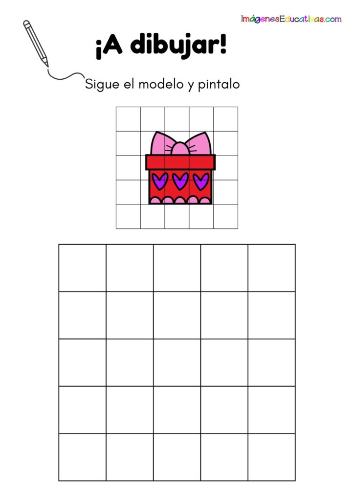 DÍAS ESPECIALES amor y amistad, colorear, dibujar, dibujos, dibujos en cuadrícula, motricidad fina, San Valentín