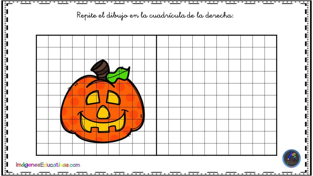 Divertidas fichas de Halloween para dibujar en cuadrícula y posteriormente colorear. Un ejercicio para trabajar entre otros aspectos, la motricidad fina. La motricidad fina comprende todas aquellas actividades del niño que necesitan de una precisión y un elevado nivel de coordinación. Ese es el caso de actividades como la siguiente.
