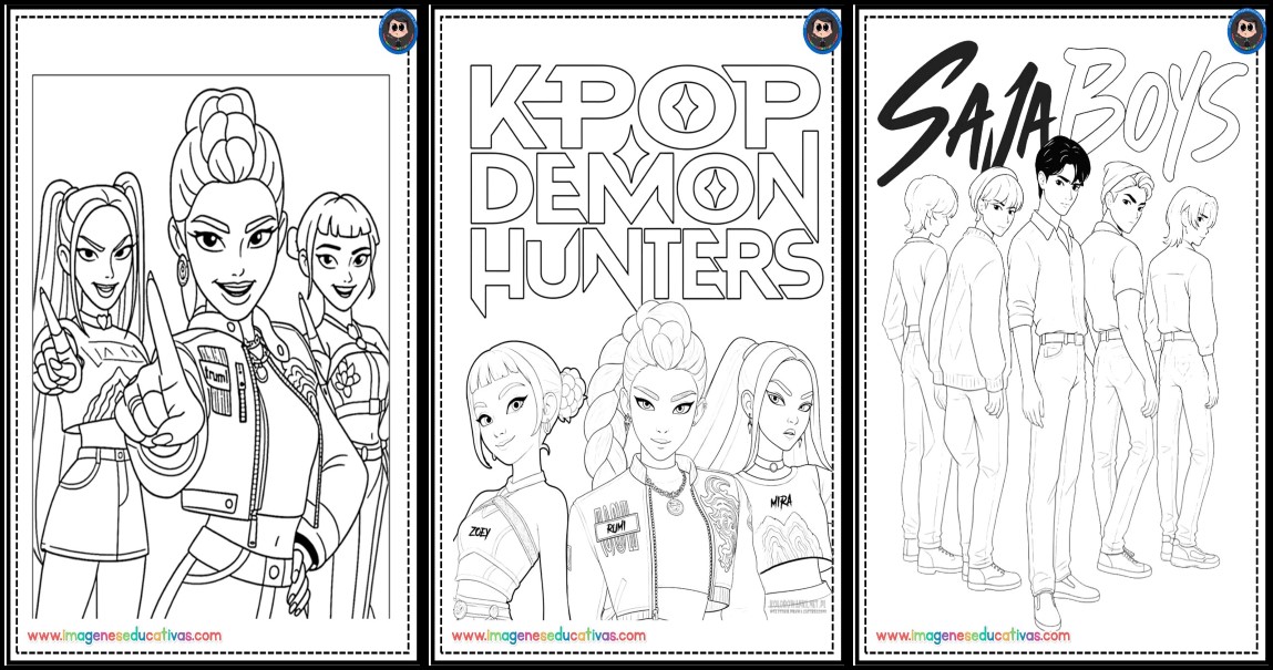 colorear de las Guerreras K-Pop y los Saja boys (1)