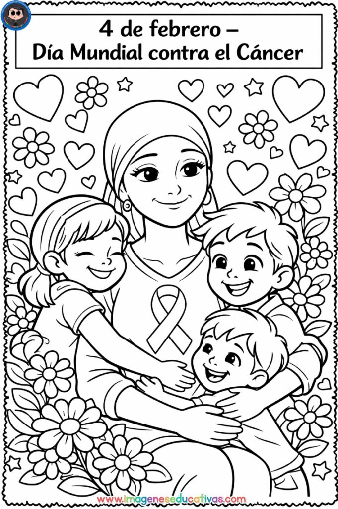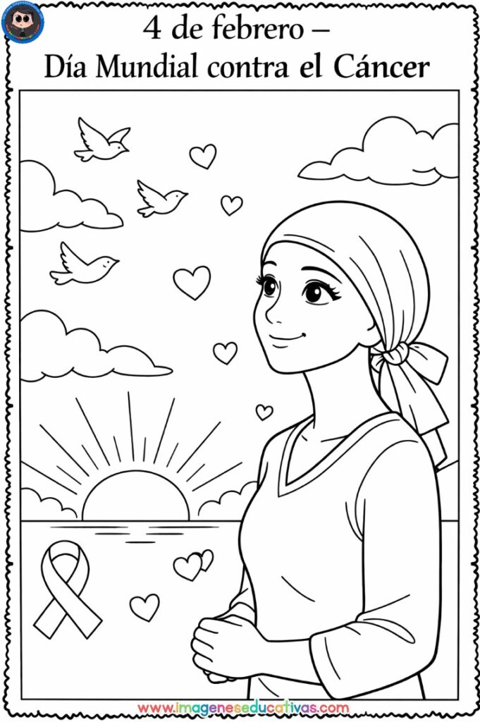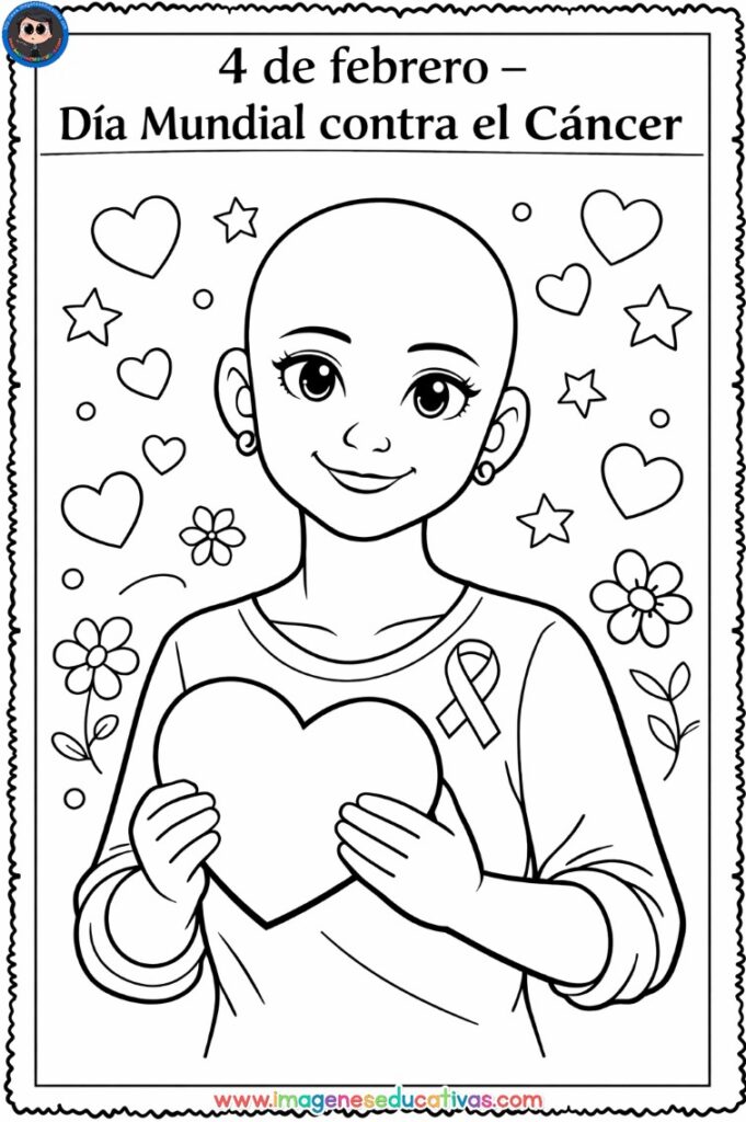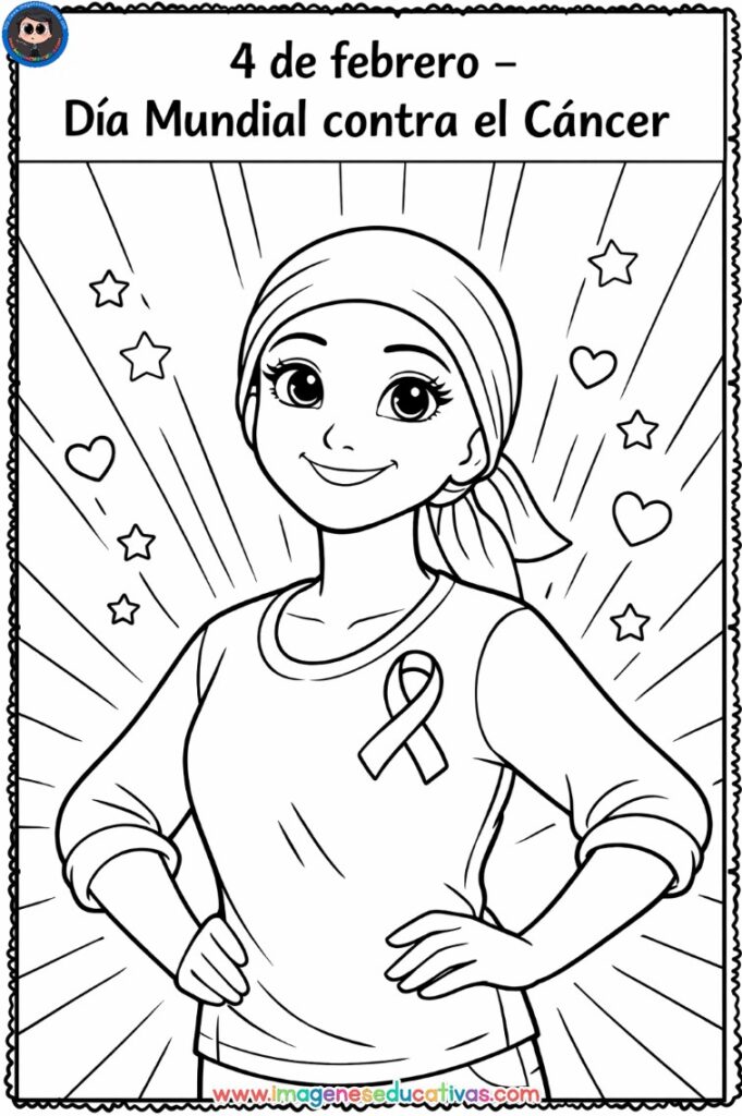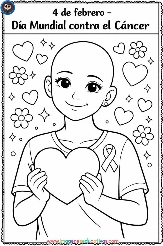 Los dibujos para colorear del Día Mundial contra el Cáncer (4 de febrero) son un recurso educativo valioso para trabajar la concienciación, la empatía y la educación para la salud en el aula. Su enfoque visual y respetuoso permite abordar esta fecha significativa de manera adecuada y formativa para el alumnado.
