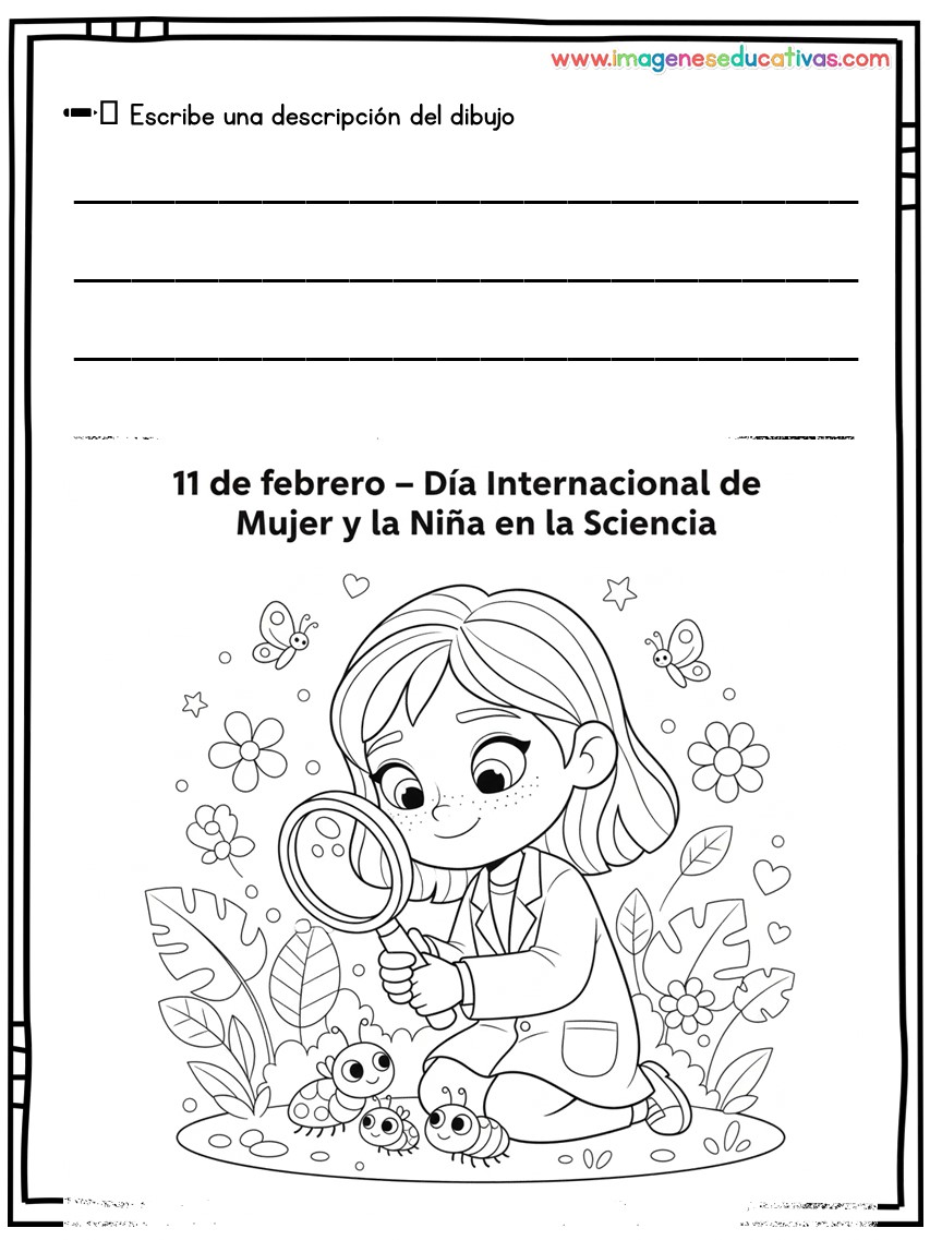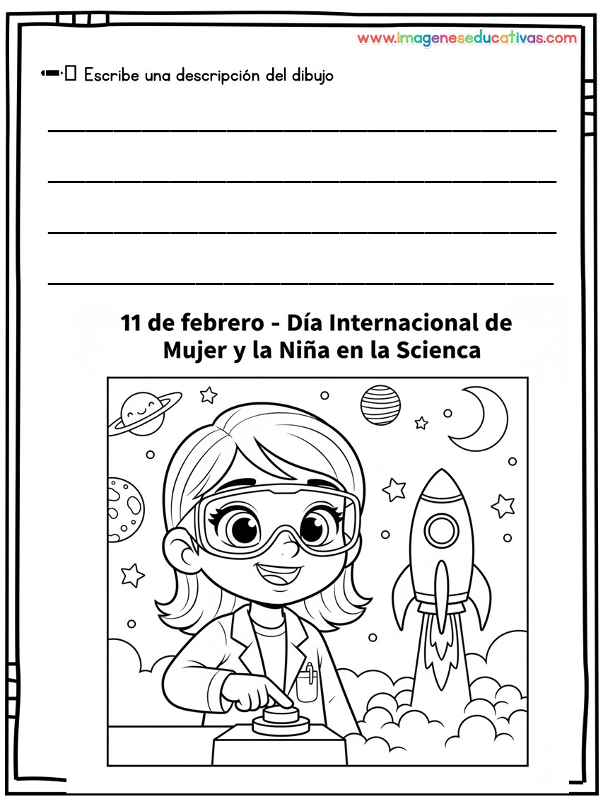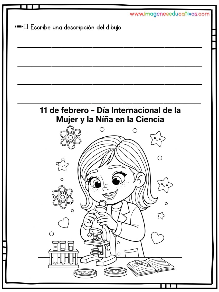 Dibujos para colorear y describir por el Día Internacional de la Mujer y la Niña en la Ciencia