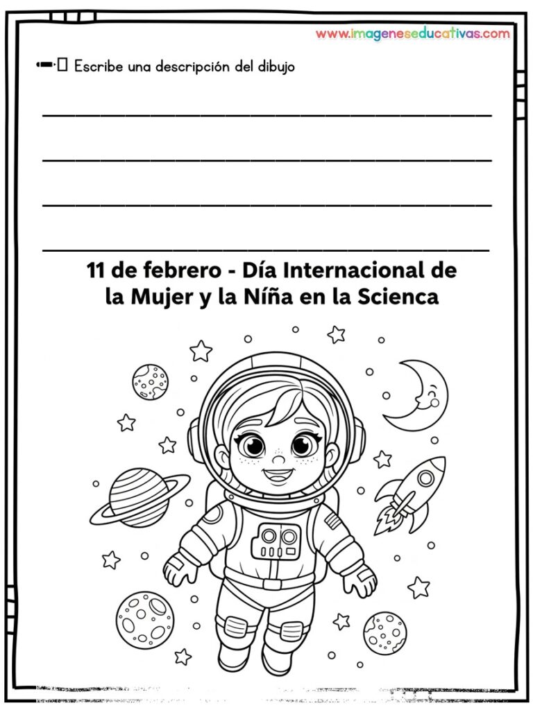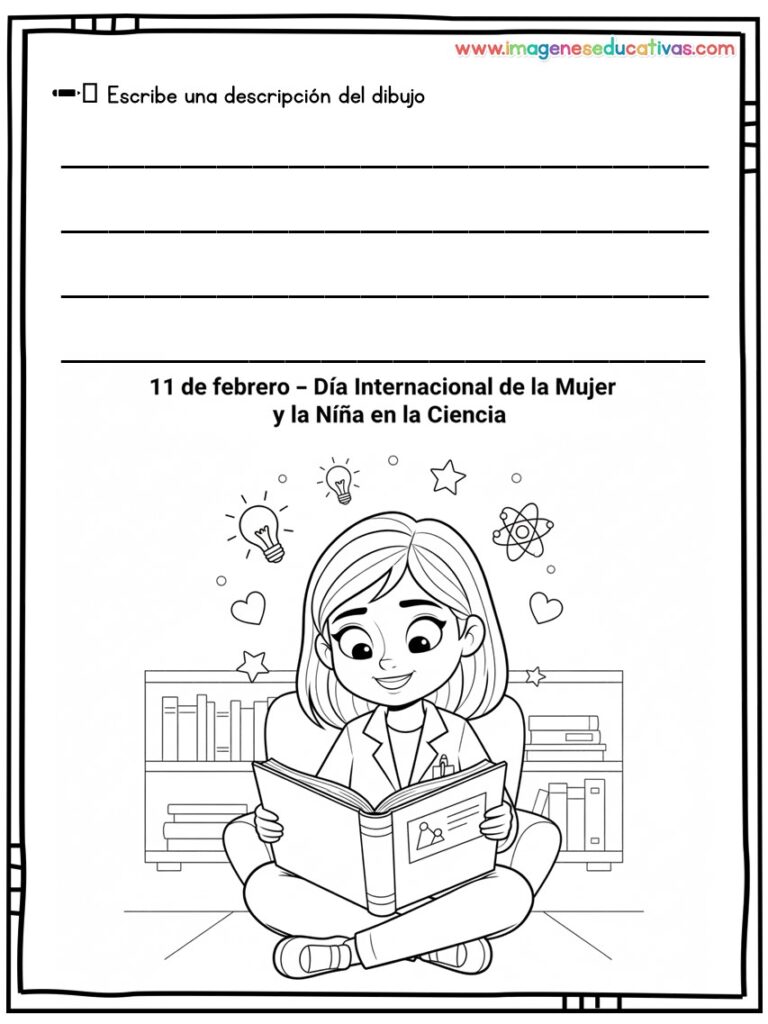 Los dibujos para colorear y describir por el Día Internacional de la Mujer y la Niña en la Ciencia son un recurso completo para trabajar ciencia, lenguaje y valores de manera creativa y participativa. Su enfoque visual y descriptivo permite al alumnado aprender, reflexionar y expresarse mientras se celebra una fecha tan significativa.