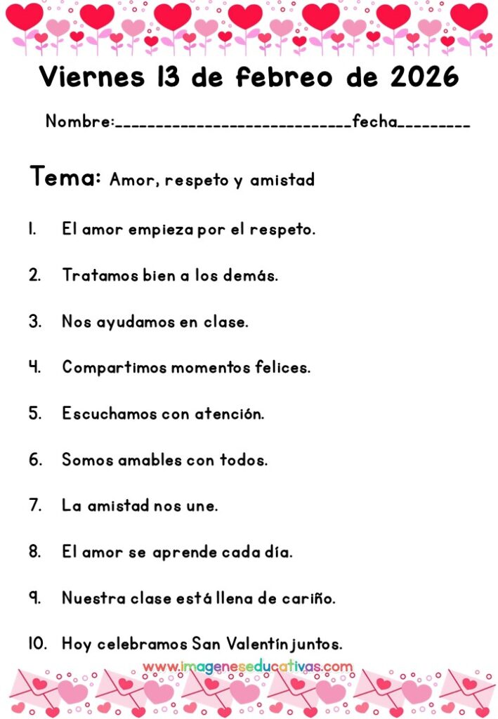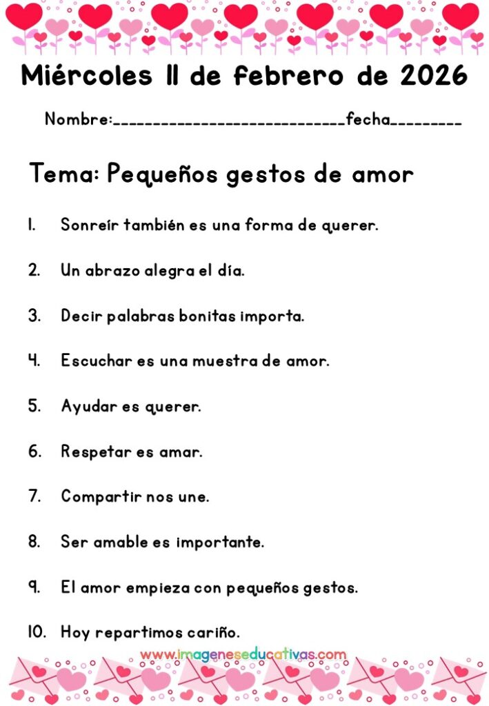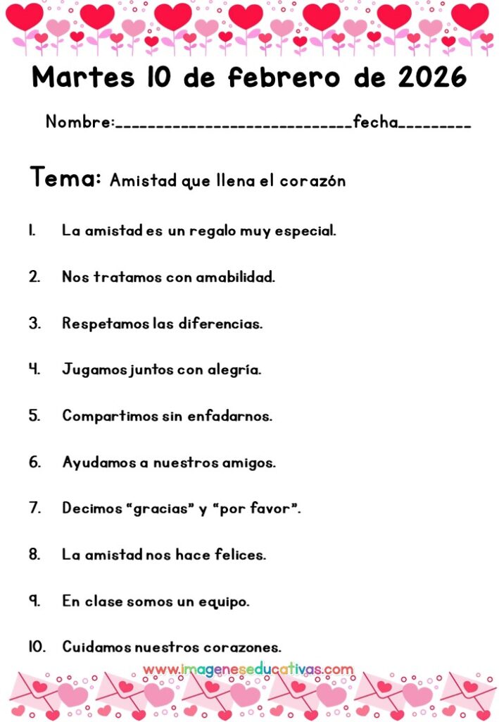 Los dictados de la semana del 09 al 13 de febrero son un recurso práctico y eficaz para trabajar la lengua escrita de forma constante y organizada. Su uso diario permite consolidar aprendizajes, mejorar la ortografía y reforzar la confianza del alumnado en su expresión escrita.