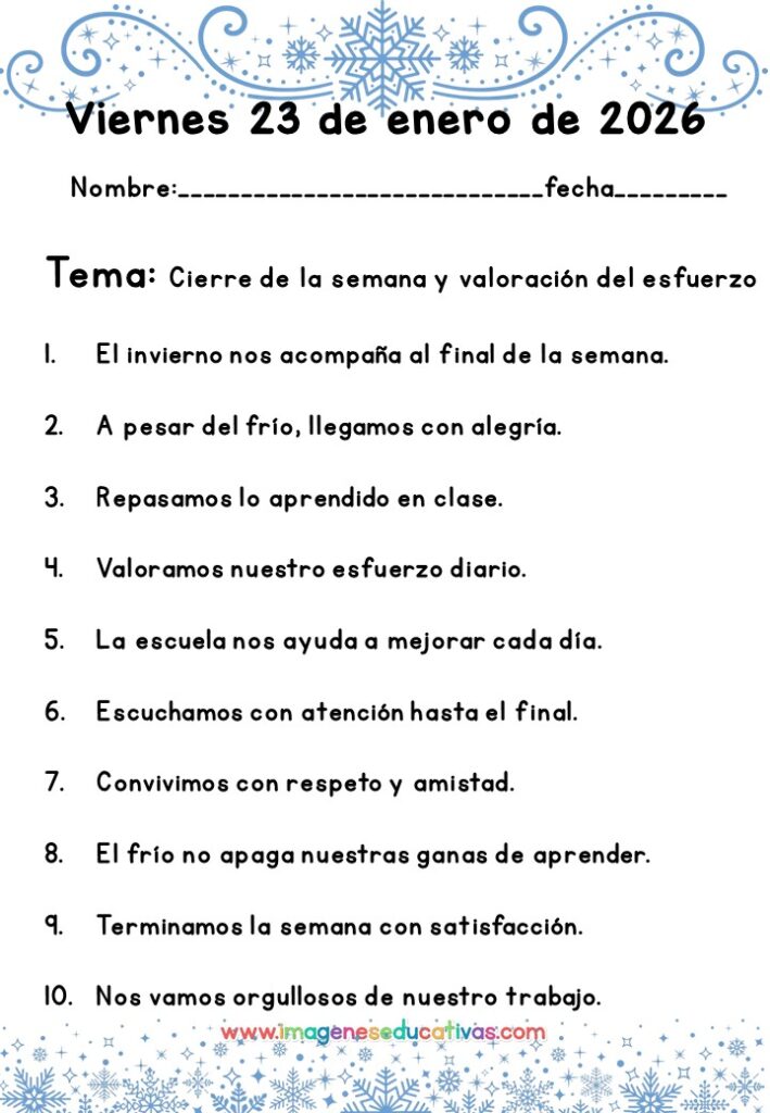Los Dictados de la Semana 12 a 16 de Enero son una herramienta esencial para trabajar la lengua escrita de forma continua, organizada y eficaz. Su estructura semanal permite avanzar progresivamente mientras se consolidan las habilidades de escritura y escucha.